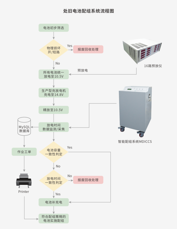 为进一步提升配组的准确性和效率,我们开发了返修电池配组技术系统。基于电池的历史数据和使用情况,我们利用先进的机器算法对电池的剩余寿命进行测定。这一技术能够综合考虑多种因素,包括电池的充放电循环次数、环境温度和使用负载等,从而得出更加准确和可靠的预测结果。 通过整合上述评估、分级和测定技术,我们能够为电池配组提供全面的数据支持和决策依据。这不仅有助于提升电池配组的准确性和稳定性,还能有效延 | 在电池组性能优化领域,明确配组目标至关重要。配组目标的设定需要紧密围绕提高电池组的整体性能以及延长其使用寿命这两个核心要素。只有明确这些目标,我们才能制定出具有针对性且切实可行的配组策略,从而确保电池组在实际应用中能够发挥最佳性能。 为了实现这些目标,我们深入研究并开发了有效的配组算法。这些算法通常基于电池性能评估结果进行制定,包括但不限于容量匹配等方法。容量匹配算法注重电池之间容量的平衡,确保电池组在充放电过程中能够保持稳定且高效的工作状态。 |