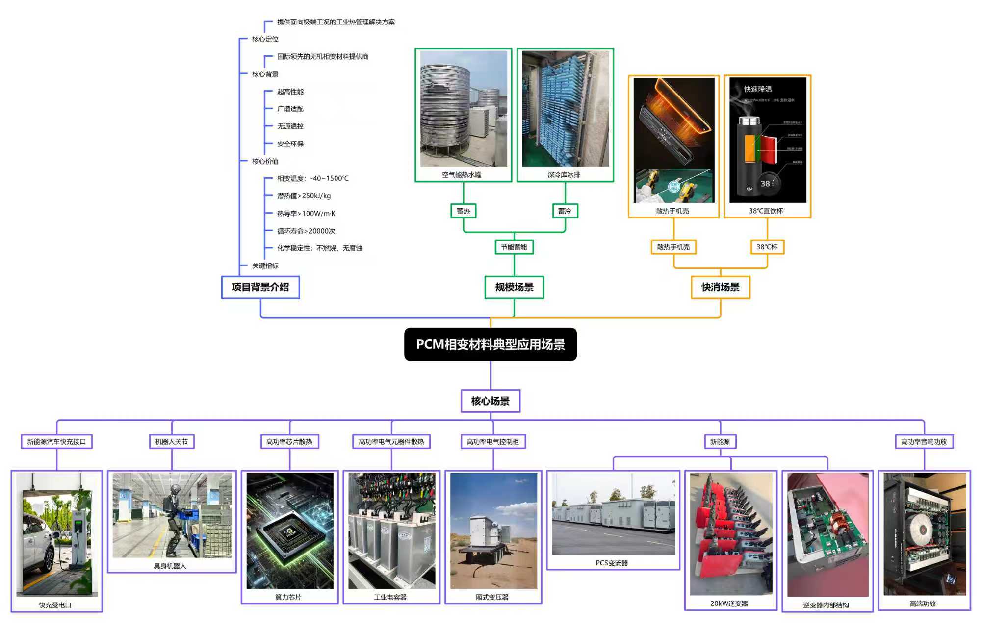 PCM(相变材料)凭借其独特的相变潜 热特性,能够在电池温度升高时吸收大 量热量,在温度降低时释放热量,从而 实现高效、被动式的温度缓冲。 例如,在电池充电过程中,PCM可以吸 收电池产生的热量,防止温度过高;在 放电过程中,释放热量维持电池温度, 保持性能稳定。